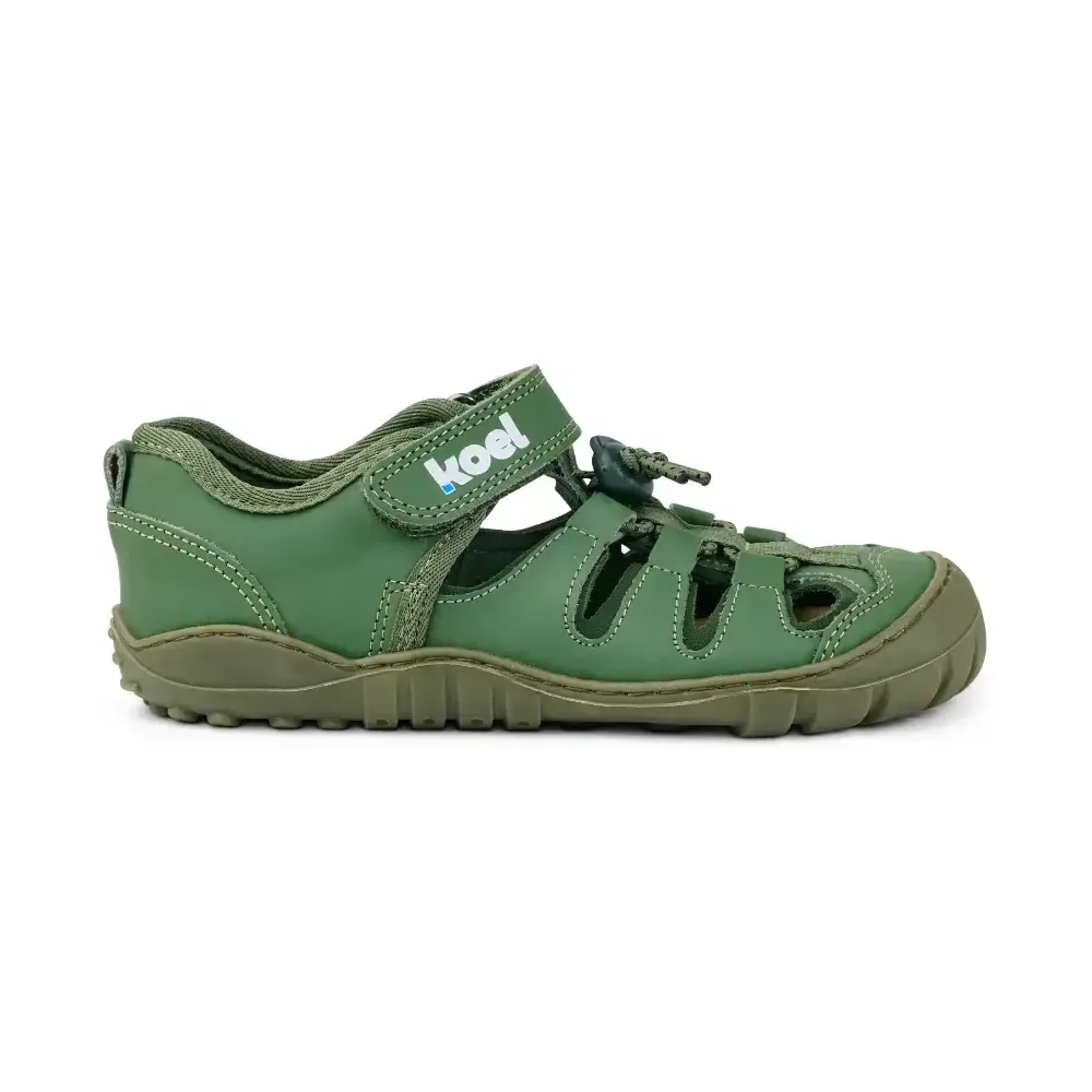 Vzdržljivi otroški sandali za poletne aktivnosti na prostem. zunanji material: tekstil notranji material: tekstil podplat: naravna guma (5 mm) prožen podplat s poglobljenim profilom širok prstni del zaščita na prstnem delu protizdrsen podplat elastične vezalke s stoperjem in ježek omogočata dobro fiksiranje odstranljiv vložek primerni za srednje do široka stopala veganski Čevlji imajo nedrseč in raven podplat iz naravne gume. Santi podplat je ustvarjen za intenzivno rabo v različnih razmerah, saj ima dodatno poglobljen profil, ki nudi odličen oprijem. Sprednji del je dvignjen in dodatno ščiti prste ter čevelj pred obrabo. Otroški sandali Madison 2.0 so odlični za poletne aktivnosti. Peta, prsti in stranski deli sandalov so zaprti, zaradi česar se čevlji lepo prilegajo stopalu in nudijo podporo. Podloga je iz mehke lycre, ki je prijetna in nudi udobje. Elastične vezalke in velcro trak omogočata enostavno obuvanje ter dobro fiksiranje. Koel čevlji so oblikovani tako, da se z lahkoto upognejo, imajo širok prstni del in anatomsko oblikovan tanek podplat, ki omogoča odličen stik s tlemi.