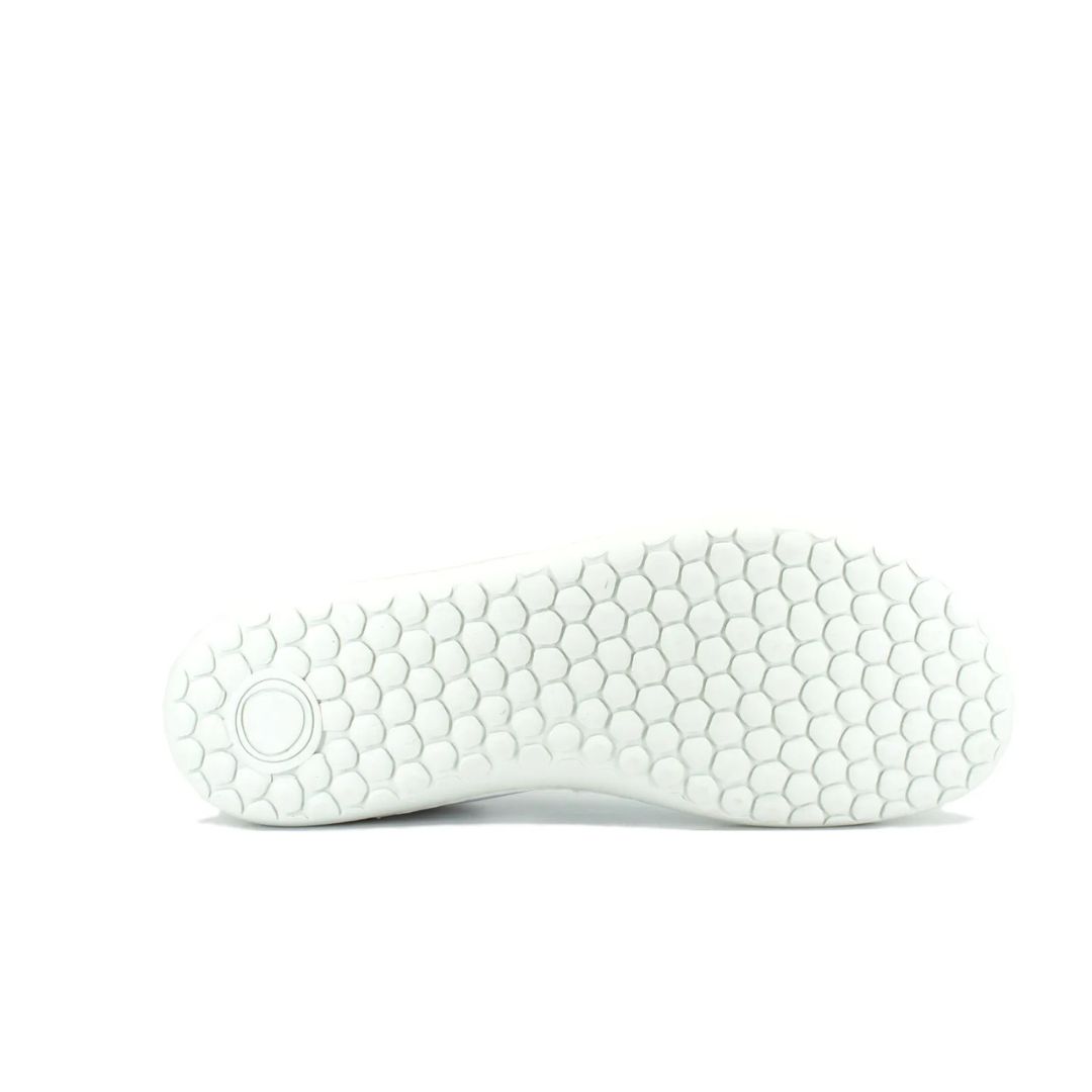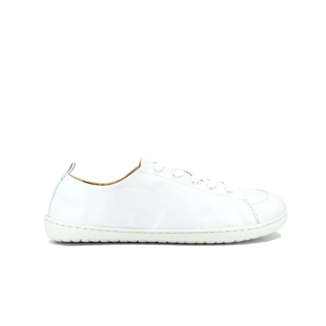 Izjemno lahki in prožni beli usnjeni čevlji.