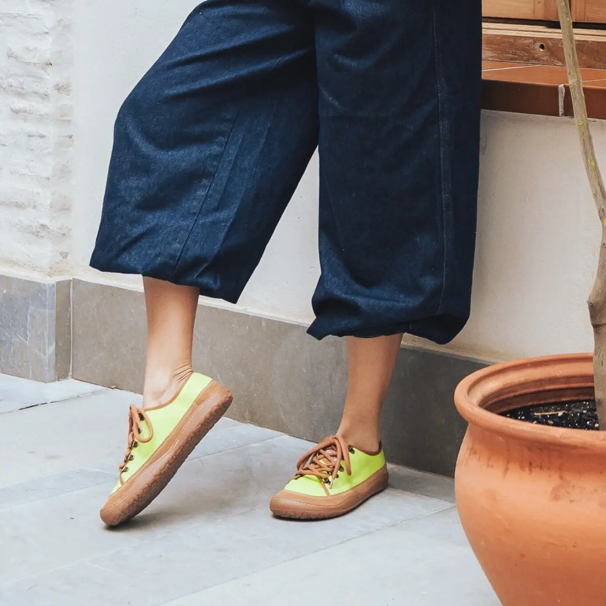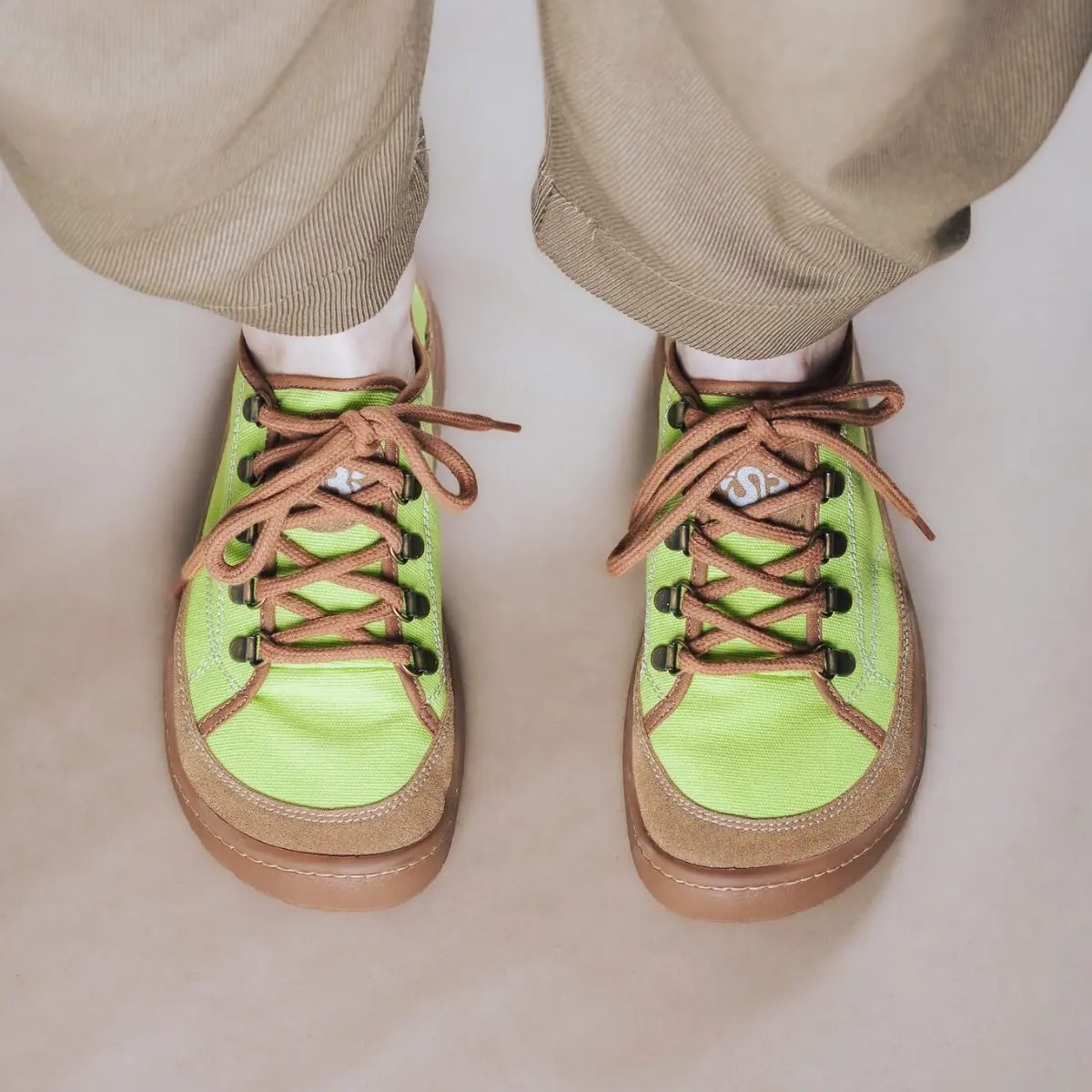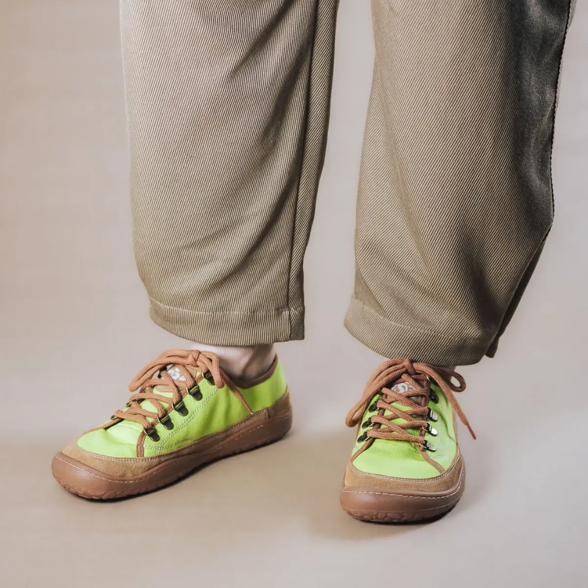 Bosonogi čevlji za vsakdan iz zračnega in lahkega bombaža v sveži zeleni barvi.